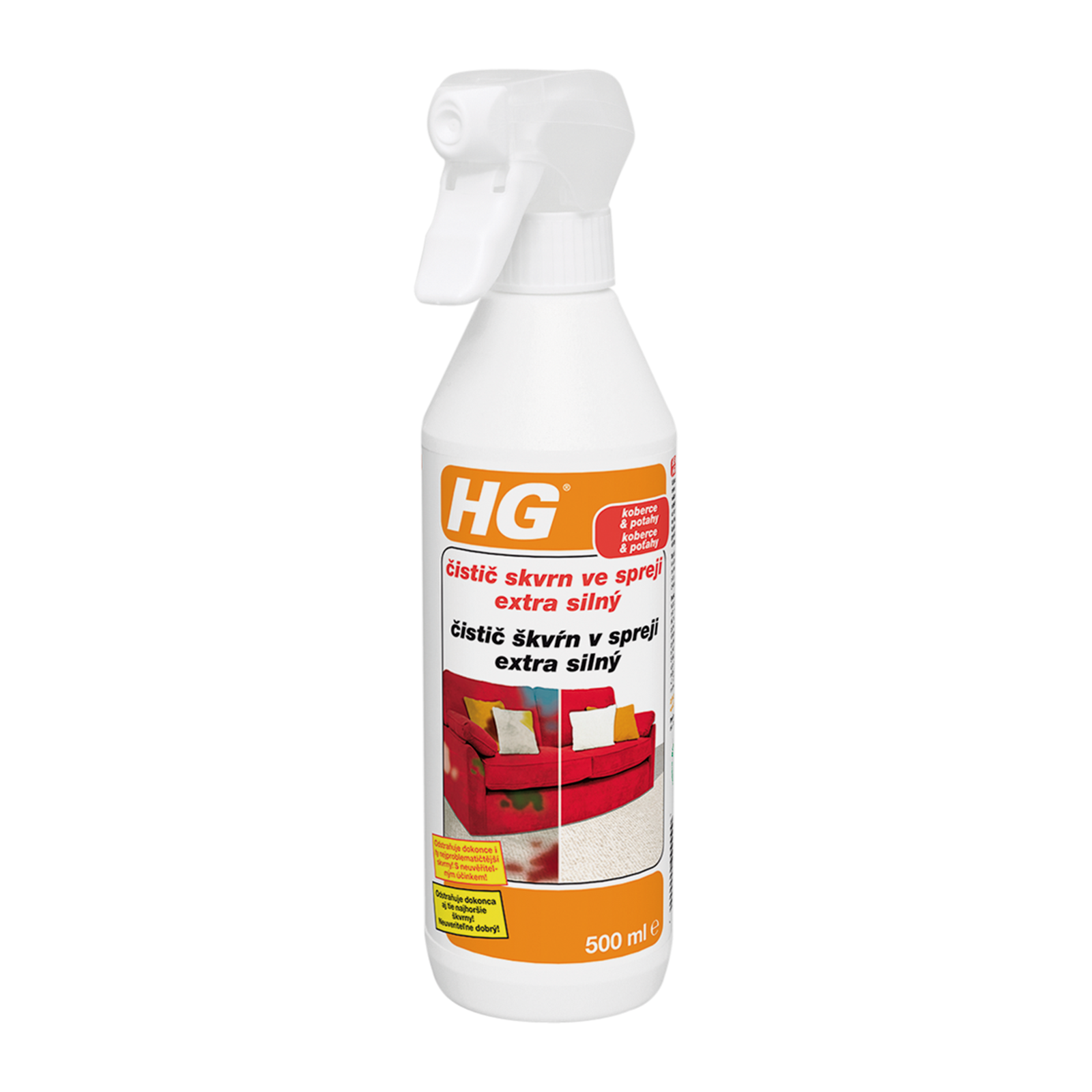 Pokud něco rozlijete nebo ušpiníte čalounění (židle, postel, křesla…), najdete čistič HG na čalounění ve skříni u pračky a sušičky. Stačí nastříkat a otřít.